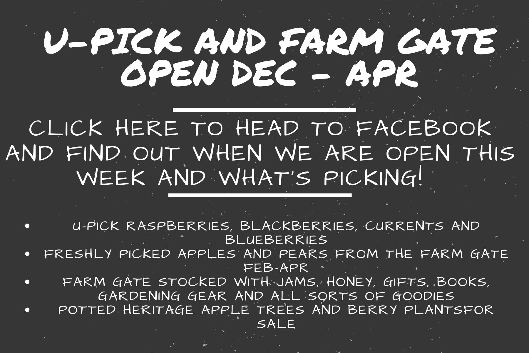 This season we'll be offering pick your own summer and autumn raspberries, thornless blackberries (Chester, Ouchita, Apache and Navaho), trailing blackberries (Silvanberry & Marianberry), black and red currents, over 40 varieties of apple and pear and limited amounts of blueberries. Head to Facebook for the latest updates each week.